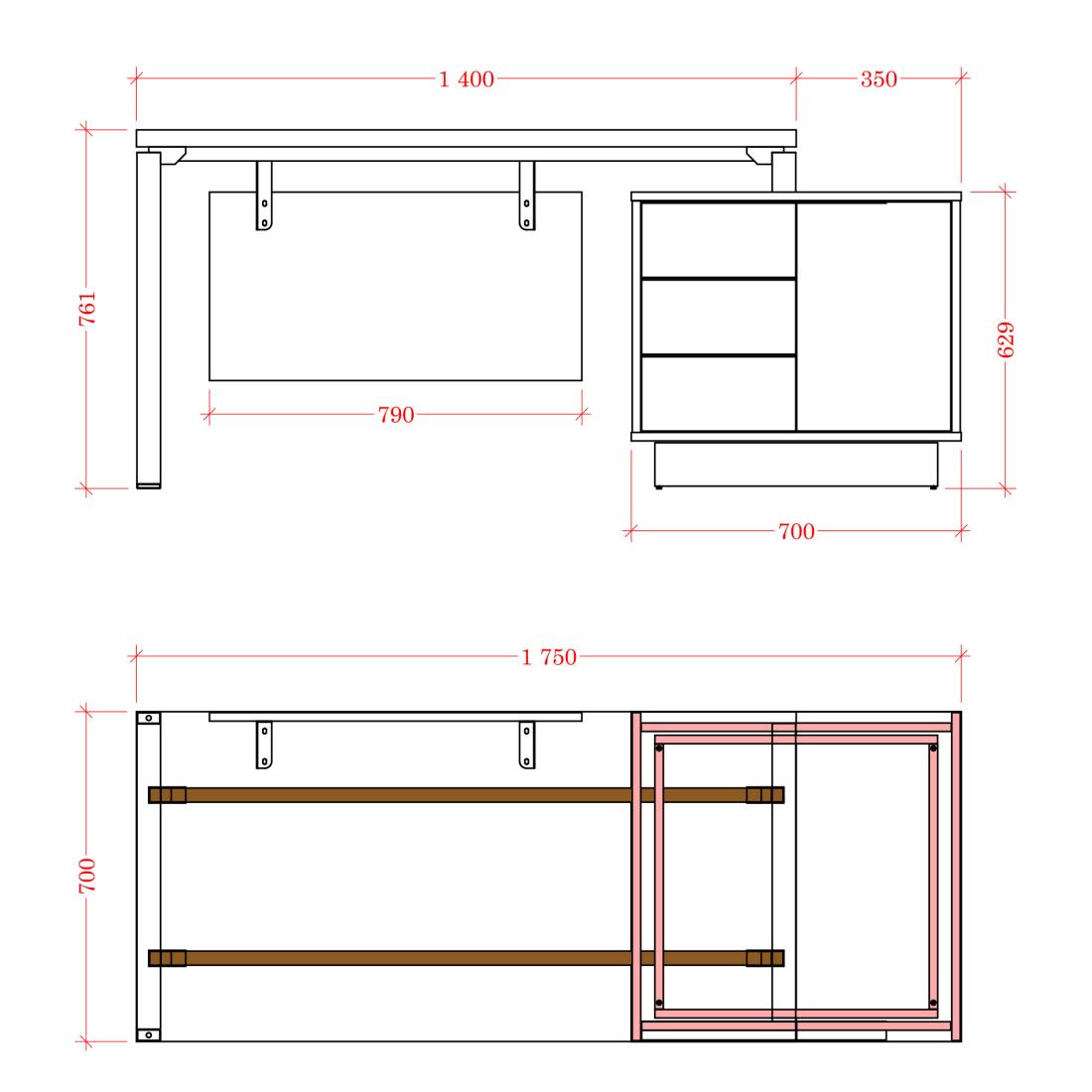 *Stalas gali būti gaminamas ir nestandartinių išmatavimų. Galima modifikuoti šoninę spintelę, galima keisti jos išmatavimus.