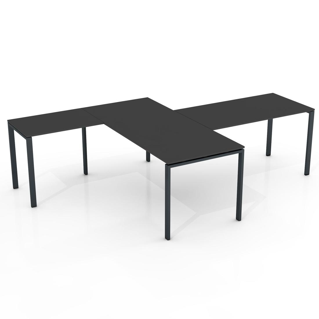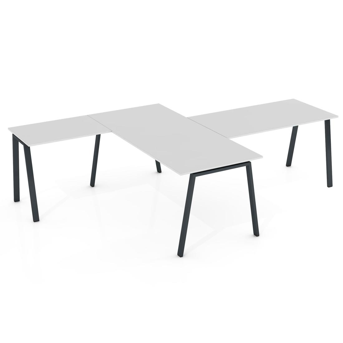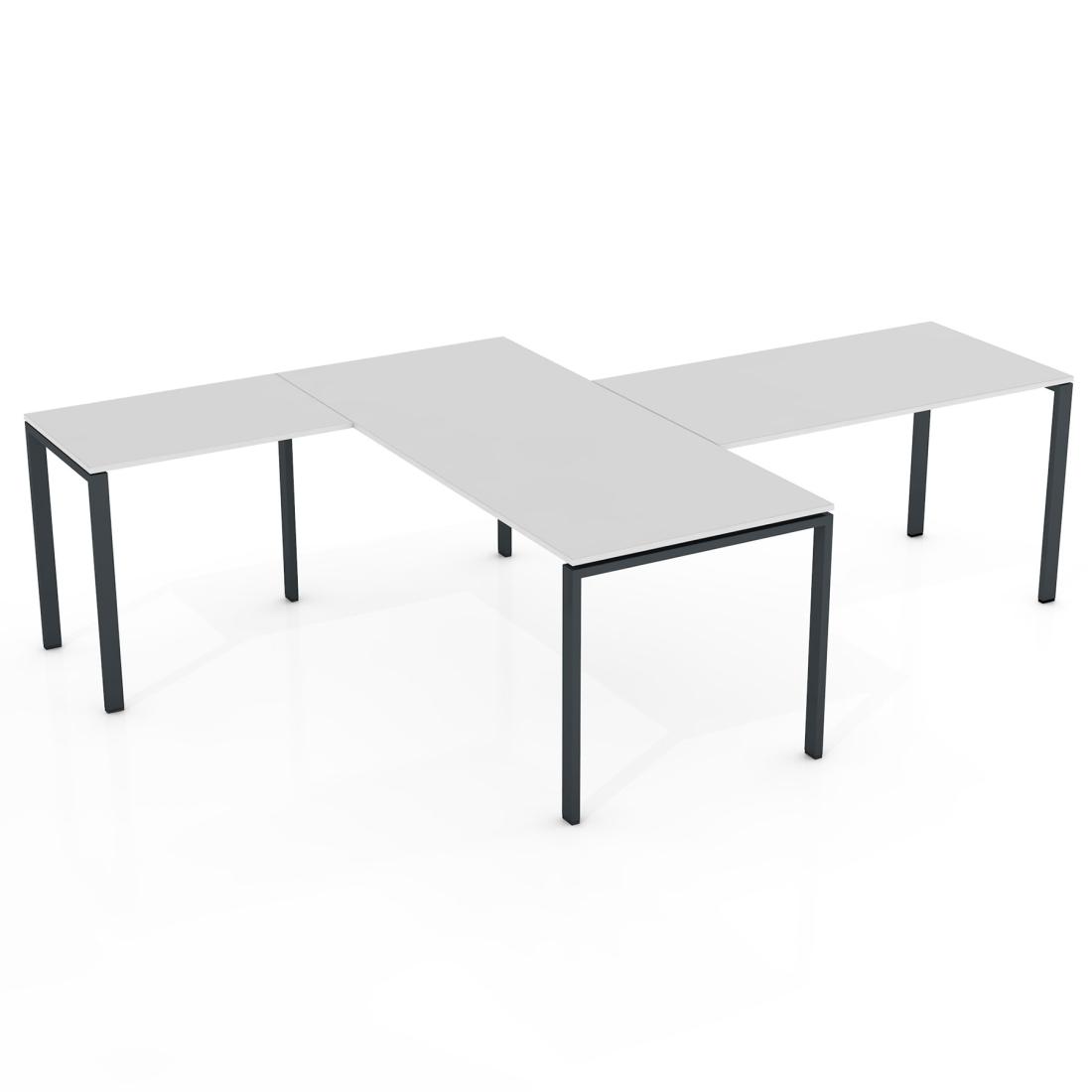 Kaina: Nurodyta bazinė kaina galioja 140 x 250 cm stalui (140 x 70 cm pagrindinis stalviršis) su 18 mm storio stalviršiu. Šoninis stalviršis – 80 x 55 cm / 18 mm; Priestalis 70 x 100 cm / 18 mm. Su T formos metalinėmis kojomis, be kojų uždangos ir pertvarų. Taip pat be laidų kanalų ir kitų priedų. Galutinė kaina priklauso nuo jūsų pasirinktos komplektacijos.